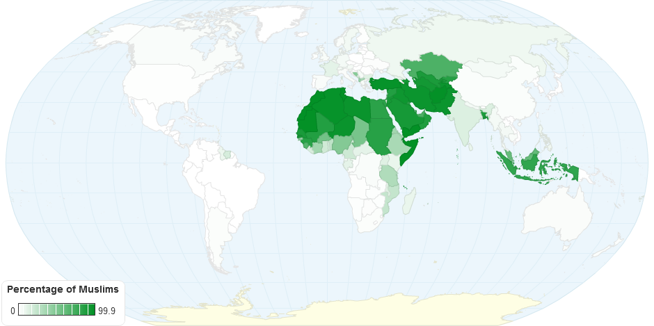 Percentage of the population of each country that is adherent of Islam.