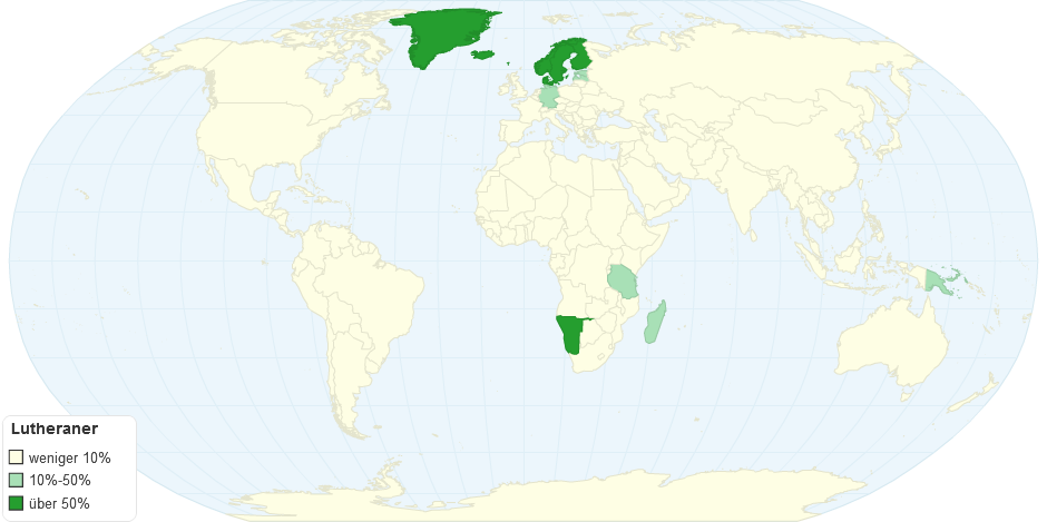 Lutheranische Kirchen nach Land: Absolute Mehrheit & Signifikante Minderheiten.