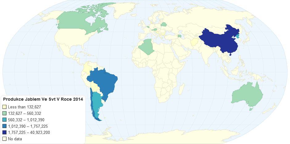 Produkce jablek ve vybraných státech světa v roce 2014.
