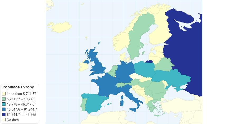 Mapa zobrazující populaci Evropy