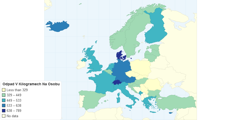 Odpad (v kg) na osobu, Evropa 2015