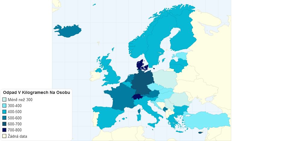 odpad v Evropě (v kilogramech na osobu) 2015 - Krizova