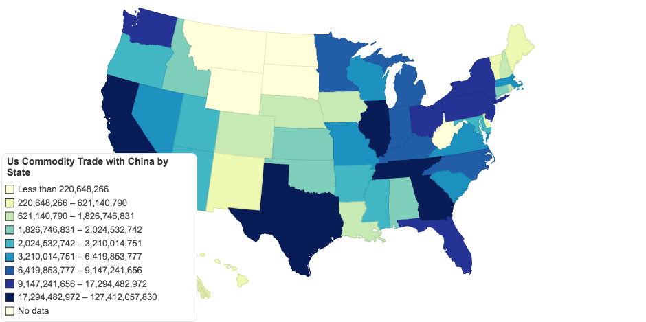 Us Commodity Trade with China by State