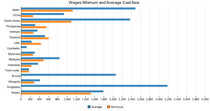 Wages Minimum and Average East Asia