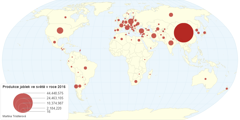 Produkce jablek v EvropÄ› od roku 2015 do roku 2017