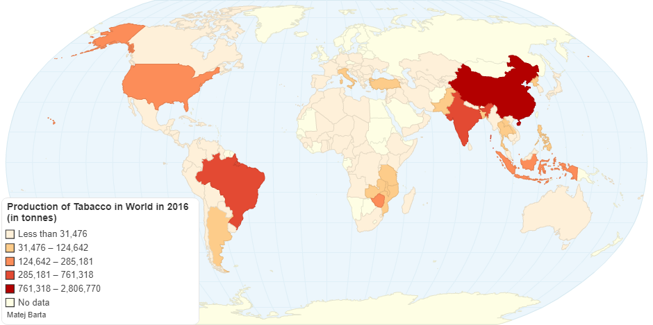 Production of Tabacco in World in 2016
