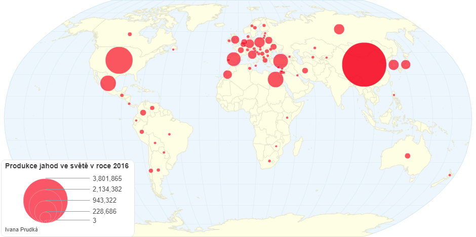 Největší produkce jahod je v Číně, USA, Mexiku a Evropě (Španělsko, Polsko, Německo). Jedná se o státy mírného pásu a poměrně teplého podnebí alespoň po část roku.