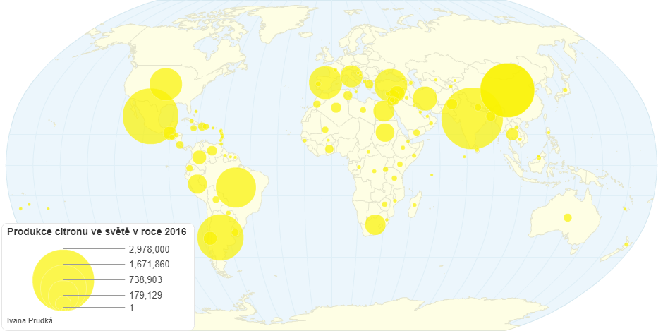 NejvÄ›tší produkce citronu ve svÄ›tÄ› je v Indii, Mexiku, ÄŒínÄ›, ArgentinÄ› a Brazilii. V EvropÄ› mají nejvÄ›tší produkci ŠpanÄ›lsko a Itálie. Jedná se tedy o státy nacházející se v subtropech, mimojiné citrony údajnÄ› pocházejí z jihovýchodní Asie.