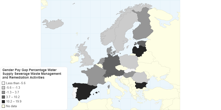 The highest GPG regarding water supply sewerage waste management and remediation activities is in Bułgaria, and the lowest is in Slovenia.