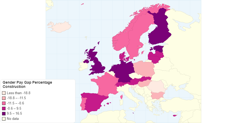 Regarding construction, the highest GPG occurs in Great Britian and the lowest in Romania.