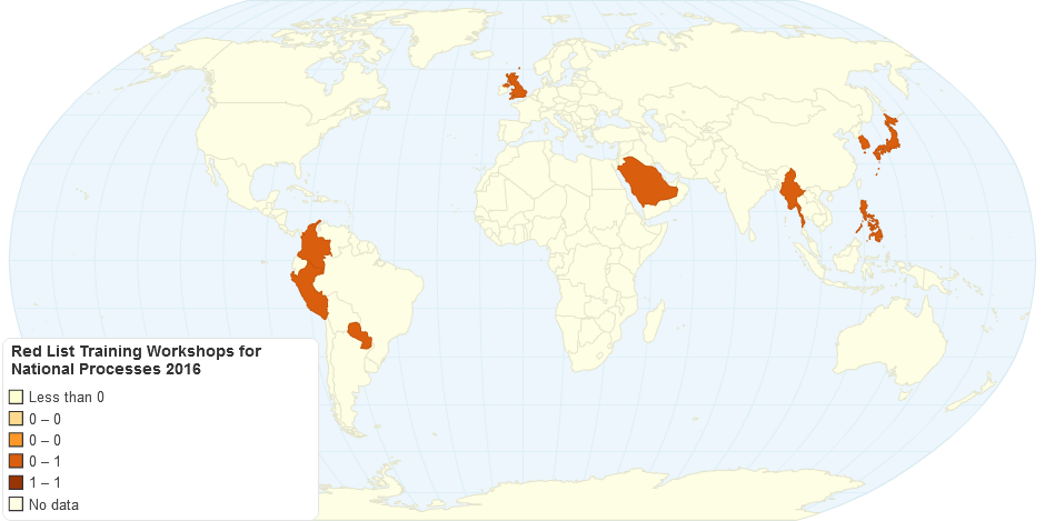 Countries where Red List Training workshops were held for national Red List processes (2017)