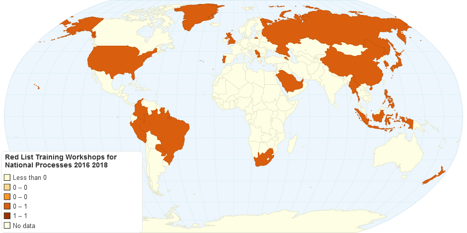 Countries where Red List Training workshops were held for national Red List processes (2016-2018)