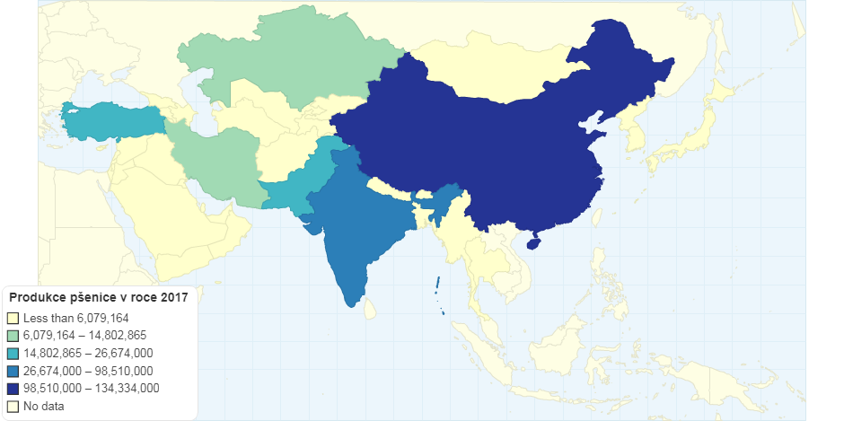 Produkce pšenice v roce 2017