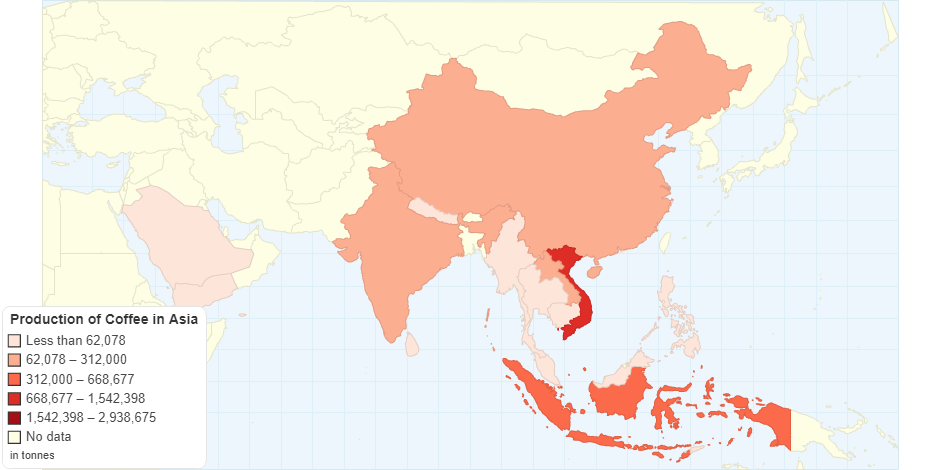 Production of coffee in Asia