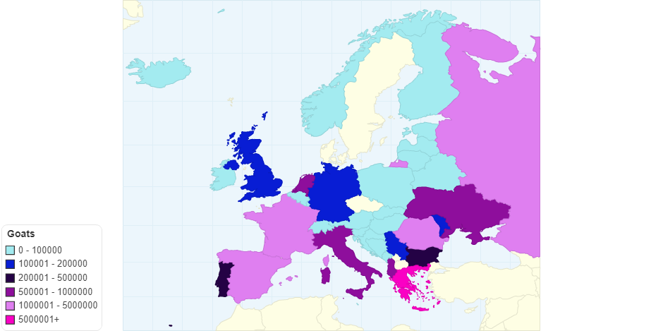 Počet koz v Evropě