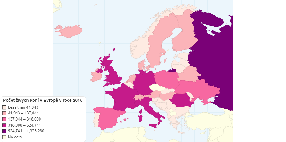 Počet živých koní v Evropě v roce 2015