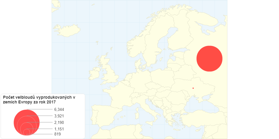 Počet velbloudů vyprodukovaných v zemích Evropy za rok 2017