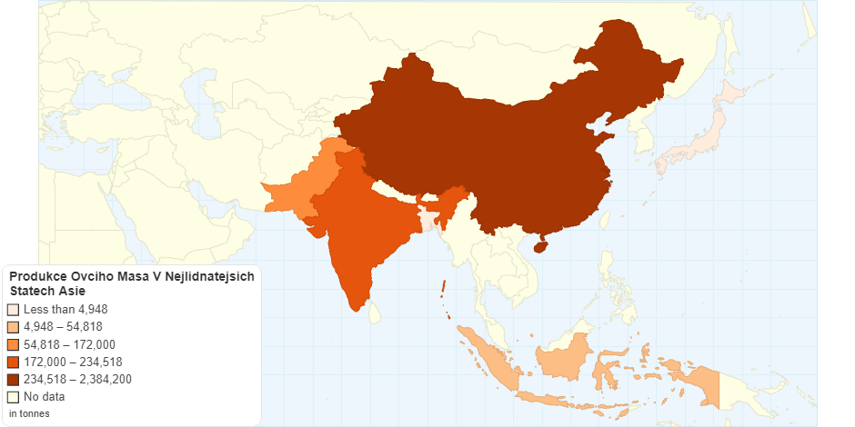 Produkce ovciho masa v nejlidnatejsich statech Asie
