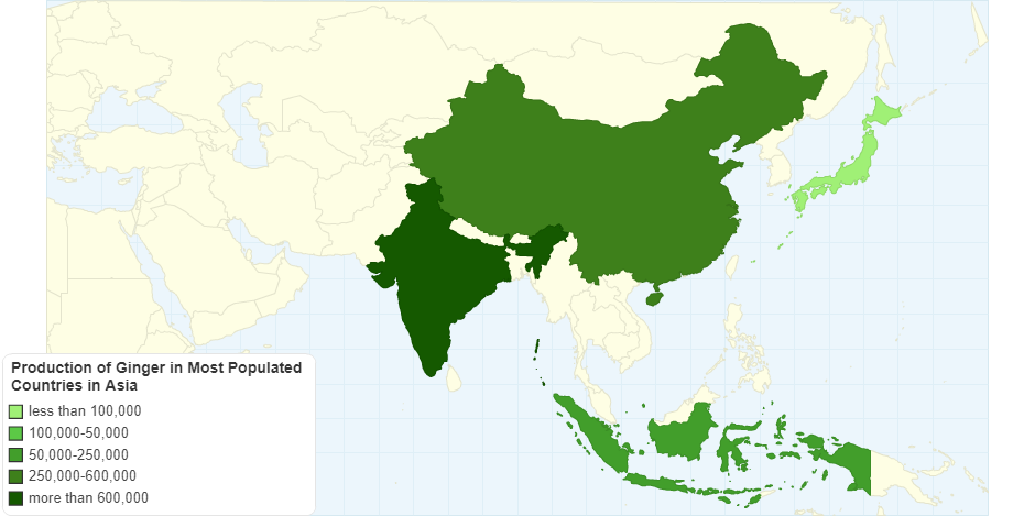 Production of Ginger in Most Populated Countries in Asia in tonnes