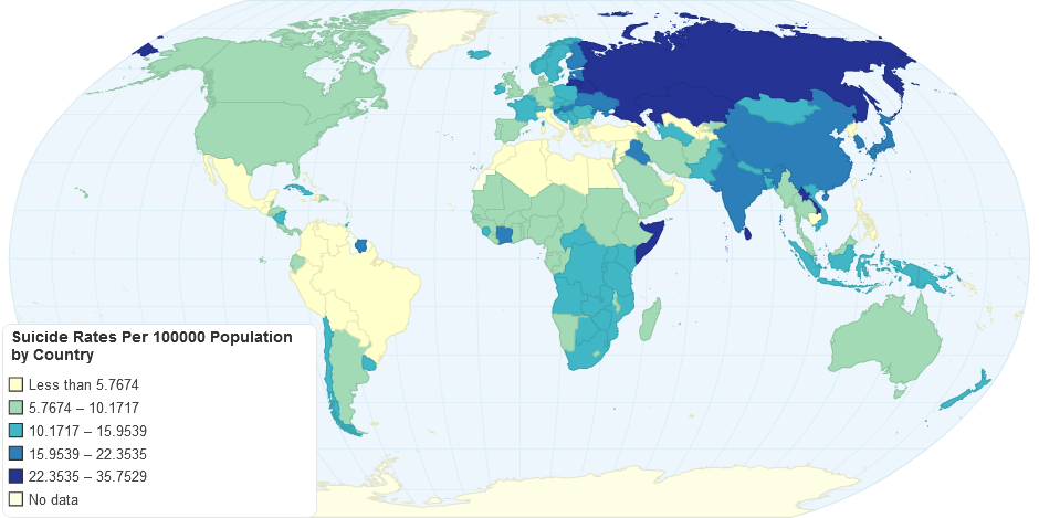 WHO Suicide Rates by Country per 100,000