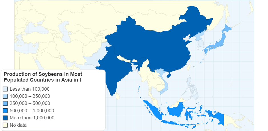 Production of Soybeans in Most Populated Countries in Asia