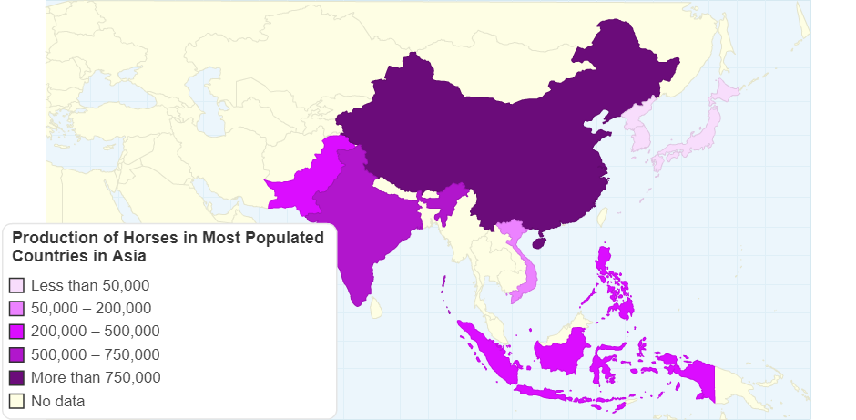 Production of Horses in Most Populated Countries in Asia
