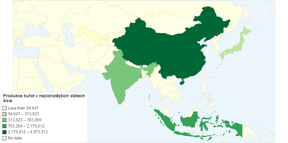 Produkce kuÅ™at v nejlidnatÄ›jÅ¡Ãch státech Asie