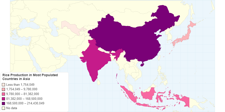 Rice Production in Most Populated Countries in Asia