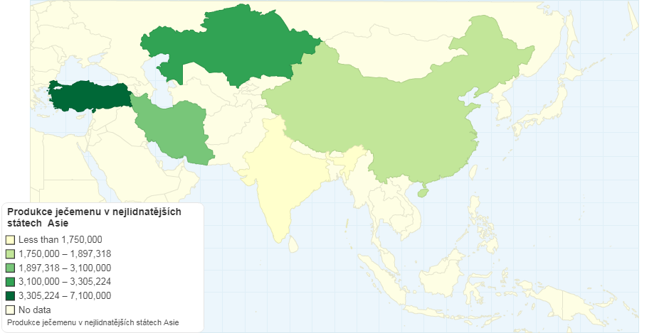 Produkce Kukuřice v nejlidnatějších státech Asie