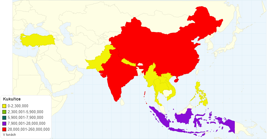 Produkce kukuřice ve vybraných státech Ázie