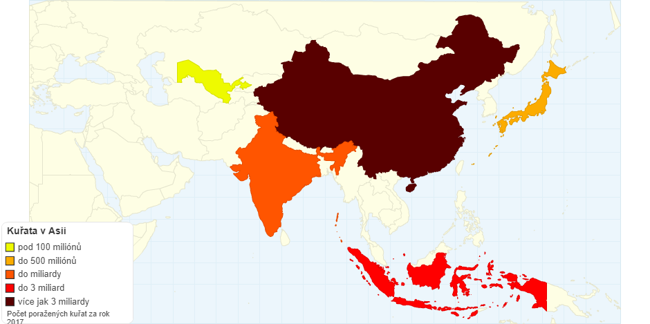 Počet kuřat ve vybraných státech Asie v roce 2017