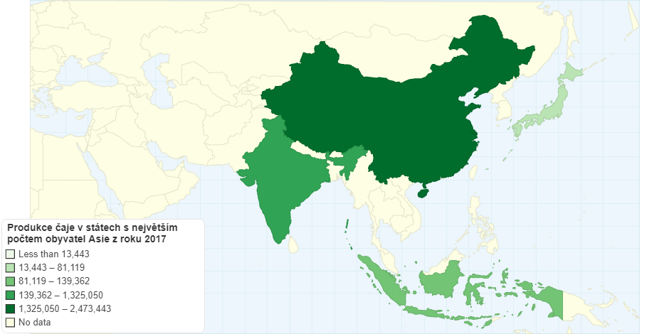 Produkce čaje v státech s největším počtem obyvatel Asie z roku 2017