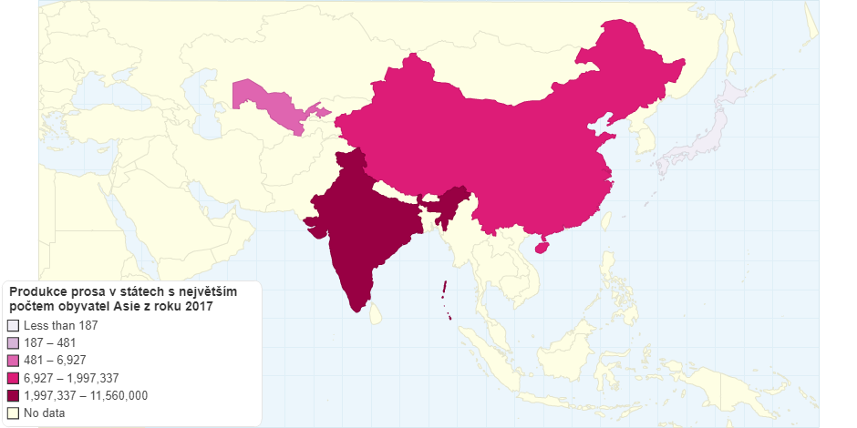 Produkce prosa v státech s největším počtem obyvatel Asie z roku 2017