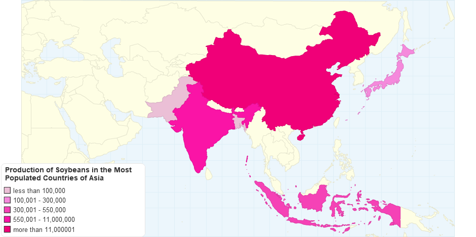 Production of Soybeans in the Most Populated Countries of Asia