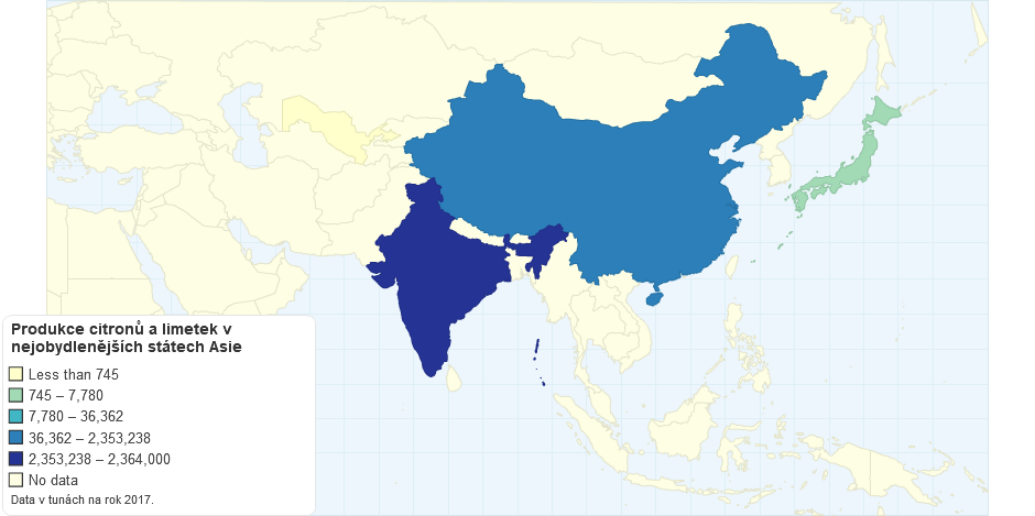 Produkce citronů a limetek v nejobydlenějších státech Asie