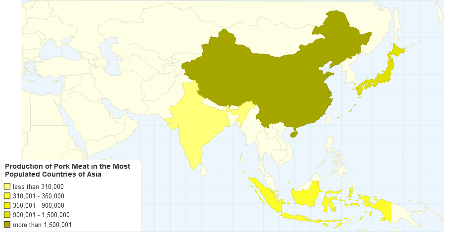 Production of Pork Meat in the Most Populated Countries of Asia