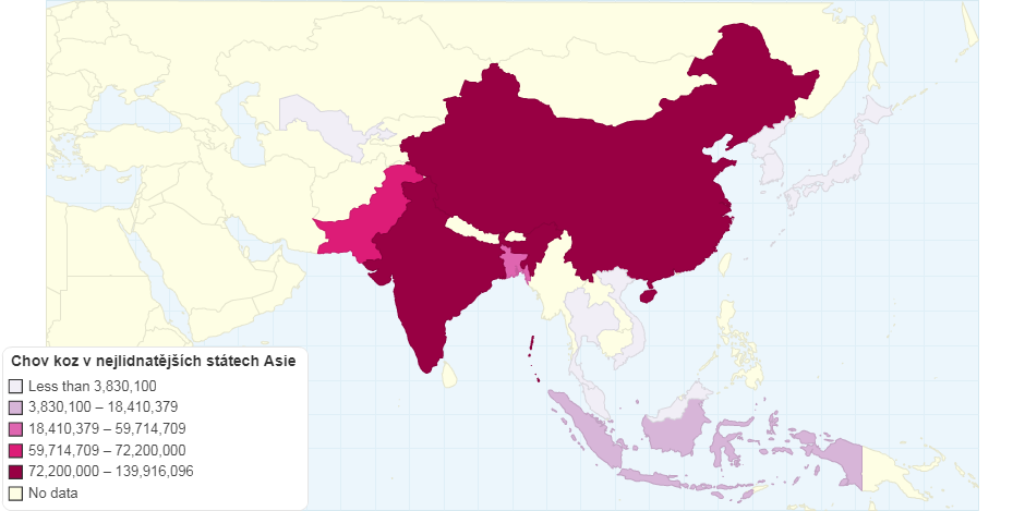 Chov koz v nejlidnatějších státech Asie