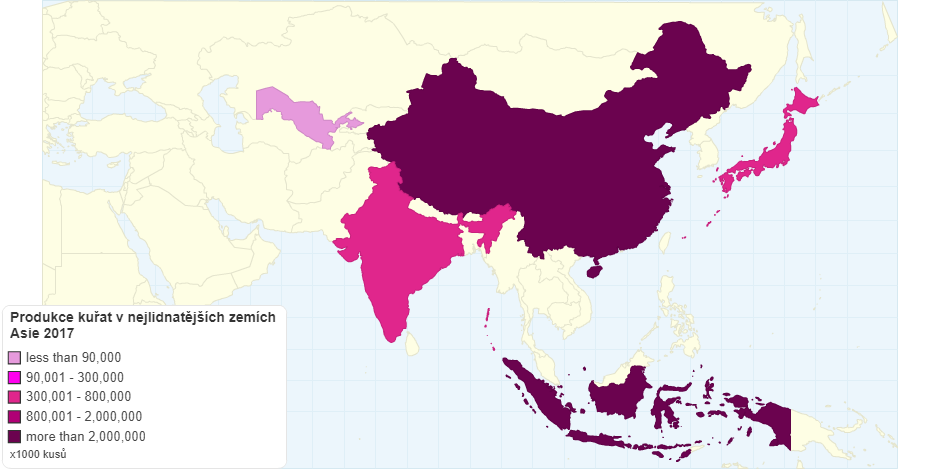Produkce kuřat v nejlidnatějších zemích Asie 2017