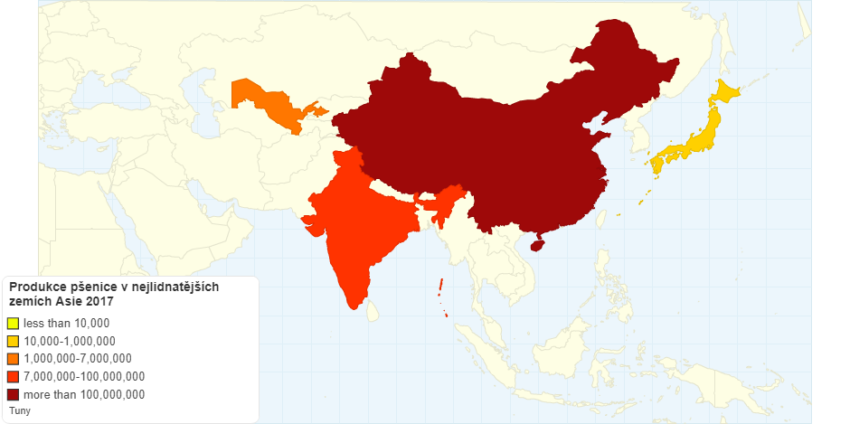 Produkce pÅ¡enice v nejlidnatÄ›jÅ¡Ãch zemÃch Asie 2017