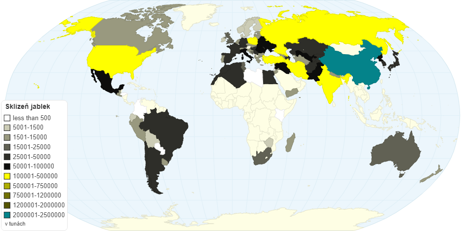 mapa lokálního skliznÄ› jablek pro rok 2017 v tunách