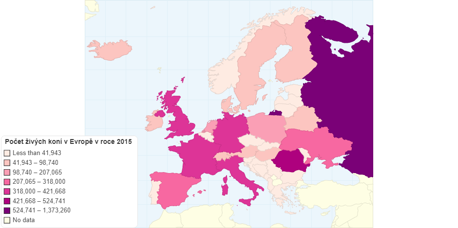 Počet živých koní v Evropě v roce 2015