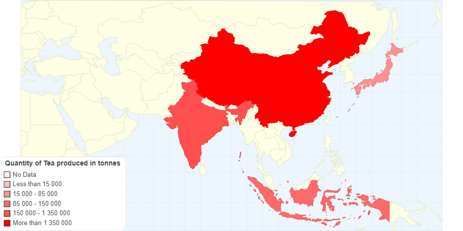 Tea Production in Most Populated Countries in Asia