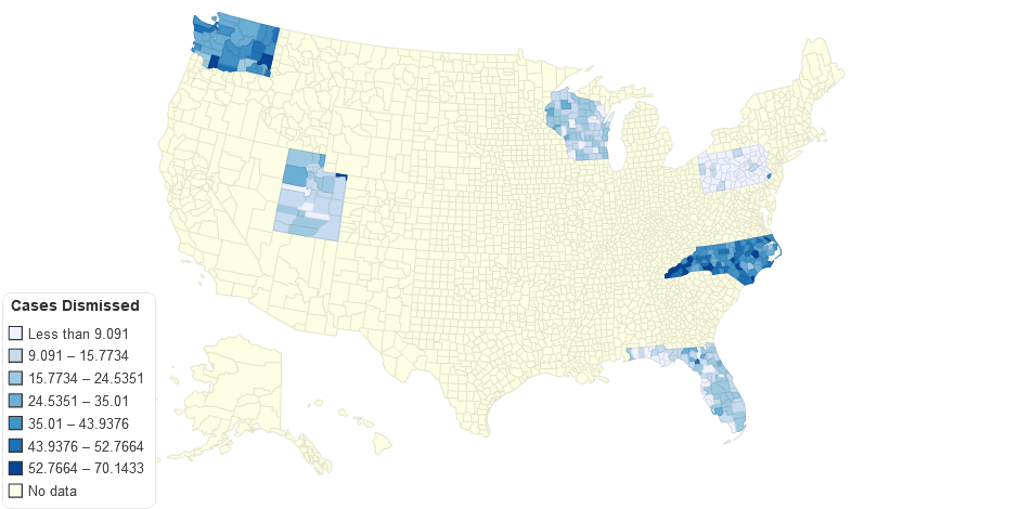 Percent of criminal cases ending in a dismissal by county.