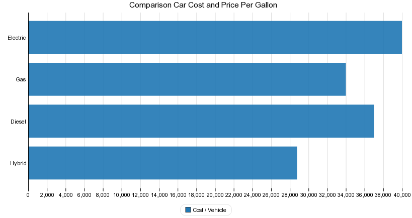 This is a comparison of initial cost of a vehicle and price per gallon or egallon of fuel per passenger vehicle.