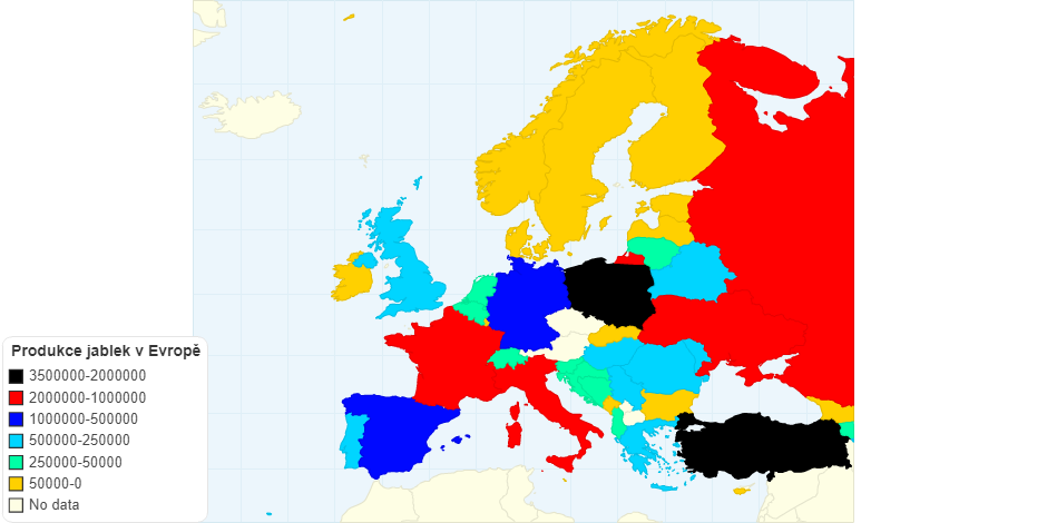 Produkce jablek v EvropÄ› pro rok 2017.