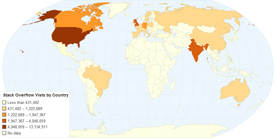 map of stack overflow visits by country