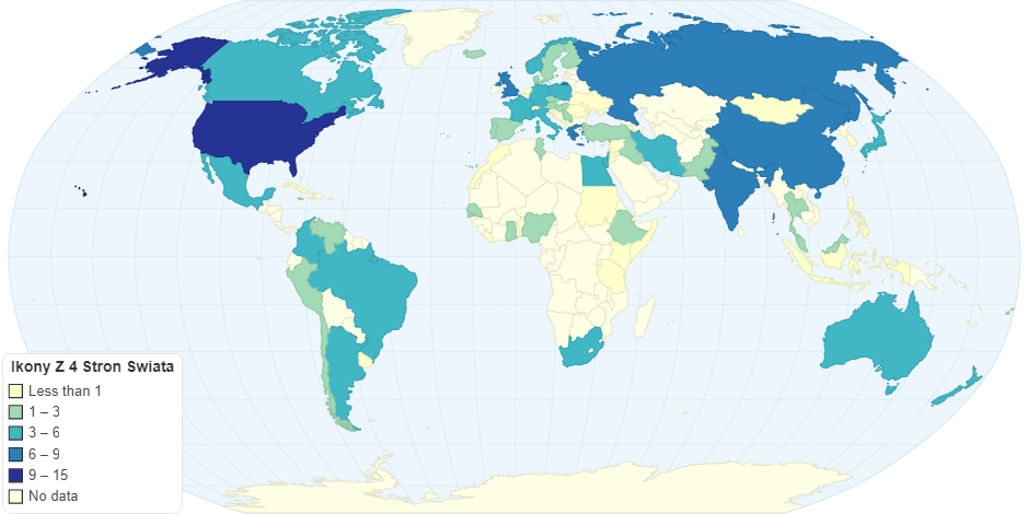 Mapa Świata z zaznaczonymi krajami, z których pochodzą Ikony z 4 stron świata Banku Kultury SOiT