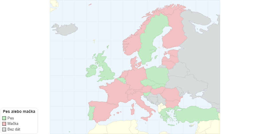 V mape sa dozviete, či je v daných štátoch Európy viac psov alebo mačiek.