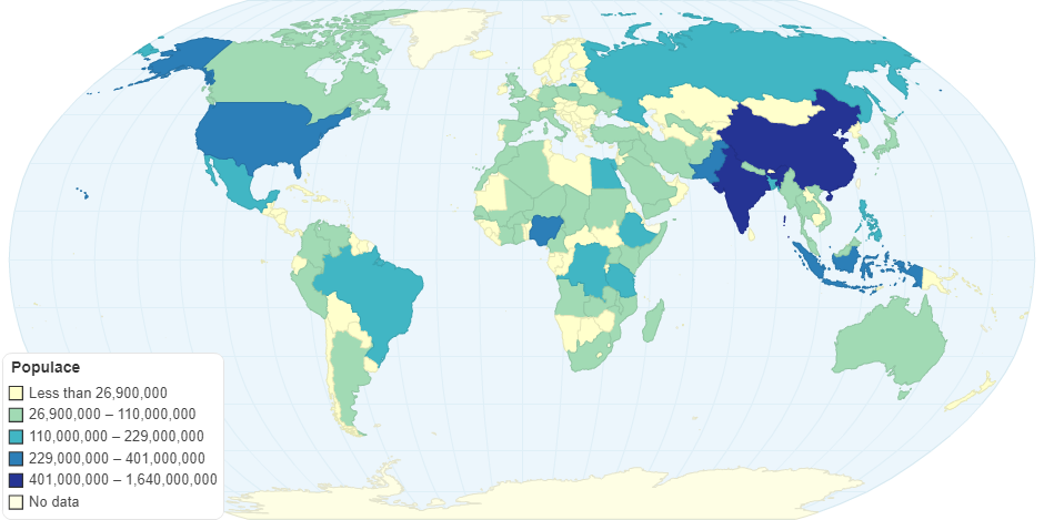 Na této mapě lze vidět předpokládaný počet obyvatel v jednotlivým státech v roce 2050