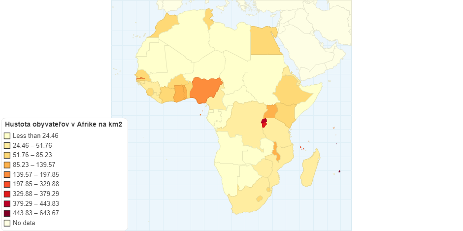 Hustota obyvateľov v Afrike na km štvorcový